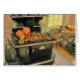 Deze briefkaart bevat een zomeroogst die op de bovenkant van een oude Glenwood kookplaat rust.