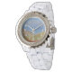 Voeg een vleugje van de kust toe aan uw garderobe met dit horloge met een landschapsfoto die de glooiende heuvels en zandduinen vastlegt met de golvende golven en blauwe horizon in de verte. De nabijgelegen duinen zijn bedekt met groene planten. De oceaan vertoont prachtige tinten blauw.