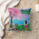 Transformeer uw ruimte met dit charmante decoratieve kussen, met een serene en grillige scène. Het ontwerp toont een schilderachtig landschap met een bloeiende kersenbloesemboom naast een rustig meer. Een meisje in een levendige roze rok staat vredig, staren naar het water, terwijl een band schommel voegt een speelse touch aan de instelling. Een roze fiets rust in de buurt, perfect om herinneringen aan zorgeloze dagen op te roepen. Dit kussen is een ideale aanvulling op elke woonkamer, slaapkamer of gezellige hoek, waardoor een gevoel van rust en nostalgie naar uw interieur.