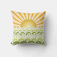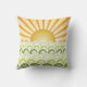 Pillow met een ontwerp van verschillende tinten groene golven met de zon aan de horizon.