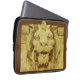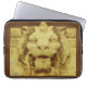 Architecturaal element van het hoofd van een leeuw. Golden tinten van de stenen sculptuur worden geaccentueerd door donkerbruine schaduwen.