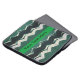 De gehaakte afghaan, in een groen rimpelpatroon, bedekt dit hoesje. In het centrum is een stevige groene bar met zwarte tekst die u uw eigen tekst op ingaat.