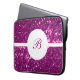 Meisjes monogram laptophoes met een gesimuleerd paars glitterpatroon en een monogram embleem dat u met jouw naam of bericht kunt personaliseren. Het ontwerp beschermt uw draagbare elektronica zoals uw netbook, laptop of tablet in stijl en maakt het uw eigen elektronica.