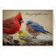 Een samenkomst van vogels, een kardinaal, een blauwvogel, en een warbler, is een leuke, fantastische manier om vrienden uit te nodigen voor een bezoek.