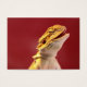 Een bebaarde draak die naar boven kijkt en er gelukkig en vrolijk uitziet.