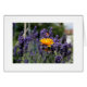 Een eenkalige bloem tegen een achtergrond van paarse lavendel