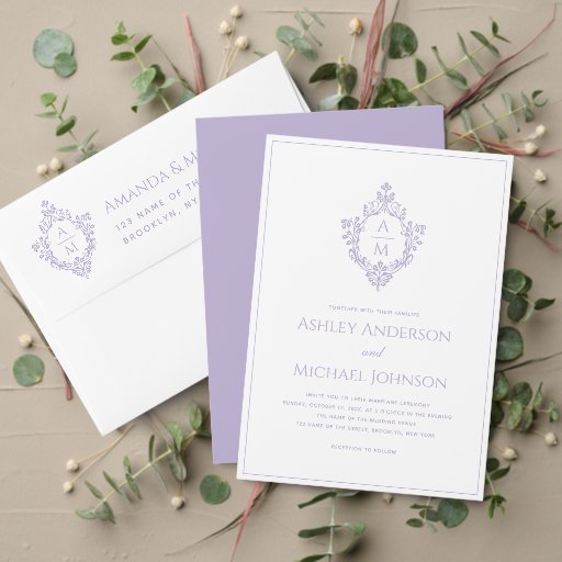 Lavender Monogram in Crest Elegant Wedding SuiteOntworpen door Artifex Designs