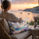 Lavendel Kust Zeilboot Aquarel Scene Kussen