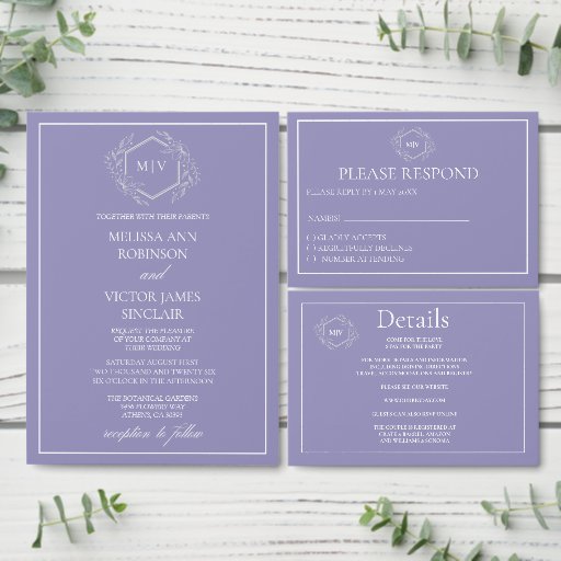 Lavender Monogram Crest Wedding Invitation SuiteOntworpen door Phyllis Waugh