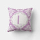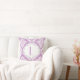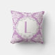 Lavendel paarse, witte damast patroonwerp / gooi accent decoratief kussen met monogram in een grijs lijst.