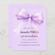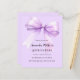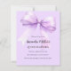 Een zachte lavendel, paarse achtergrond, versierd met een grote boog. Personaliseer en voeg een naam en partijgegevens toe. 1 vel = 1 uitnodiging bedrukt rand tot rand.