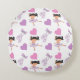 Deze schattige kussen bevatten een schattige donkerharige cartoon ballerina in een lavendel tutu. Naast haar is een paar overeenkomende balletslippers verbonden met een boog. Een donkerder violet hart en roze hart afwisselend met de ballerina en slippers op het herhaalde patroon. De afbeeldingen worden geplaatst op een witte achtergrond. Beide zijden van de kussen hebben hetzelfde afbeelding. *Bedankt aan de Kunst van de Klem van de Real van de Overeenkomst voor het gebruik van hun kunstwerk in dit ontwerp.