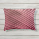 Het abstracte, originele ontwerp, in de kleuren terracotta rood op dit diagonale rode accentkussen, is gemaakt van een originele close-up foto van ZoeSPEAK van een bananenblad. De diagonale banden zijn de ribben van het blad.