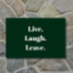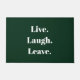Tot slot, een inspirerend gezegde voor de introverte onder ons. "Leef. Lach. Vertrek." verkondigt deze humoristische deurmat, voor introverte, asociale en sociaal onhandige mensen die gasten ontvangen met een beetje tegenzin en misschien zelfs wel enige angst. Eenvoudige, moderne witte typografie op een klassieke bos groene achtergrond. Onverwacht, eigenzinnig en een beetje sarcastisch, deze grappige deurmat is perfect voor diegenen die donkere, droge humor waarderen en niet bang zijn om het te delen met hun bezoekers (die ze hopelijk snel zullen verlaten).