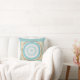 Leraar Quote Pillow in ruste: "Ik wens u alle vreugde, vrede en geluk die het leven te bieden heeft", op een lichtblauwe achtergrond, met een artiest die abstract centrum in blauwe en roomtonen heeft gecreëerd.