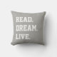Lees Dream Live. Grijze witte tekst. Chevron Back Kussen