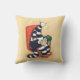 Boek nerd kussen met een leuke illustratie van een raar zwart-wit gestreept kattenschepsel met een lange nek thuis. Dit vreemde personage blijft thuis en zit vreedzaam op een oranje stoel met ogen, relaxeert en leest een raadselachtig boek. Het geniet van een warme kop koffie in zijn pantoffels met een oogversiering.