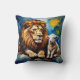 Een majestueuze leeuw en een zacht lam zitten naast elkaar, omringd door wervelende, levendige kleuren die doen denken aan de nachtelijke hemel. De contrasterende weergave van kracht en onschuld creëer is een harmonieus en boeiend tafereel.