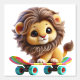 Dit afbeelding beschikt over een schattige leeuwenwelp met een stromende manen, vol vertrouwen op een felgekleurd skateboard. Zijn grote, expressieve ogen en zachte glimlach stralen een gevoel van speelse charme uit. De levendige regenboogstrepen van het skateboard dragen bij aan het algehele vrolijke en grillige gevoel van het afbeelding. Een schattige, donzige leeuwenwelp met een volle, zachte manen, rijdend op een kleurrijk skateboard. De leeuwenwelp heeft een vreugdevolle uitdrukking, met grote, expressieve ogen
