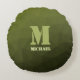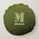 Legergroen olijf geometrisch maaspatroon Monogram Rond Kussen