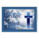 Mooie blauwe hemel van wolken met religieuze boodschap en kruis. Ontwerp en fotografie van Amber Sharp