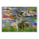 Waterlelies van de impressionist Claude Monet (1914), aangepast met een Noorse Elandhond. Een van de vele waterlelie schilderijen, deze heeft rode of felroze lelies in de vijver. Het werd in 2008 geveild voor meer dan 70 miljoen euro.