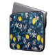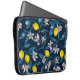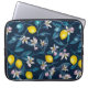 Lemon branches with blossoms and fruit on blue laptop sleeve