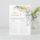 Create a lively and joyful moment at your celebration with this Name That Tune Bridal Shower Game, designed in the fresh Main Squeeze lemon citrus theme. Featuring soft watercolor lemons, flowing greenery, and elegant Mediterranean garden accents, this game invites guests to test their music knowledge by guessing popular love songs and tunes. It’s an engaging activity that sparks laughter, conversation, and friendly competition—ideal for summer, garden, citrus, or destination bridal showers. Easy to play and visually charming, it also doubles as stylish table décor. Coordinate it seamlessly with matching games, signs, and stationery from the She Found Her Main Squeeze Lemon Bridal Shower collection for a cohesive event look.