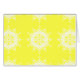 Deze witte mandala zit op een citroengele achtergrond. De kleuren zijn gelukkig en vreedzaam. Een deel van het Collectie Fenten Mandala.