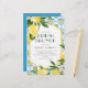 Lemon-thema bridal brunch-uitnodiging met illustraties van de waterverf van citroenen, citroenbloesems en het patroon van de mediterrane tegel. Personaliseer door namen, datum, tijd en andere details toe te voegen. Deze uitnodiging voor citroenbruid is perfect voor de vrijgezellenfeesten van de zomer- en mediterrane thema's.