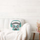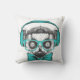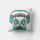 In dit ontwerp is een lemur te zien die is gekleed in blauwgroen ooglassen en een stropdas dat naar muziek luistert met een headset.