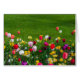 Een lentesbloempel gevuld met tulpen en narcissi met een lush green grawn.
