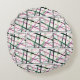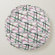 Dit ronde werpkussen heeft een ontwerp van herhalende blokken lijnen die elkaar kruisen in roze, donkerder roze, lichtgroen, donkerder groen, crème en zwart. Als je van het ontwerp houdt, maar de voorkeur geeft aan verschillende kleuren, stuur me een bericht.