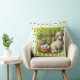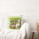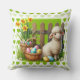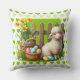 Een paaslam met mandje eieren op een groene sierkussen met groene harten voor uw paasdecoratie