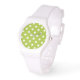Naadloze vectorveer met witte pokadots op verse groene achtergrond van gras. Voor bureaubladachtergrond, webontwerp, kaarten, uitnodigingen, bruiloft- of baby shower albums, achtergronden, kunsten en scrapbooks © en ® Bigstock® - Alle rechten voorbehouden.