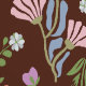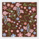 Lentetuin met chocoladebruine achtergrond, bloemontwerp met roze blauwe bloemen en groene bladeren