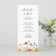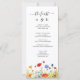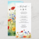 Breng de charme van de natuur over op uw huwelijksreceptie met ons aanpasbare menu "Spring Meadow Wildflowers". Dit betoverende menu bevat een adembenemende afbeelding van een lentewijdte versierd met een levendig scala aan wilde bloemen. De watercolorillustratie legt prachtig de essentie van de schoonheid van de natuur vast en vormt een schilderachtige achtergrond voor uw culinaire details. Het overheersende kleurenpalet omvat schitterende gele bloemen die warmte en vreugde uitstralen, die naadloos overgaan in een cascade van rood-oranje bloesems en ten slotte tere blauwe bloemen die een vleugje sereniteit toevoegen. Om dit menu verder te personaliseren, klikt u op de link "verder aanpassen" en gebruikt u onze ontwerptool om deze sjabloon aan te passen aan uw voorkeuren.