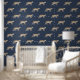 GROTE SCHAAL 12 inch patroon herhalen. Rijke marineblauwe grasdoek zoals textuur met een , moderne loopluipaard, natuur botanische illustratie in neutrale natuurlijke kleuren. Klassieke Engelse of Franse mannelijke elegantie voor slaapkamer, kantoor of bibliotheek. Verkrijgbaar in meerdere schalen voor grote en kleine ruimtes. Kunst door internationaal erkende kunstenaar en ontwerper, Audrey Jeanne Roberts ©. Audrey Jeanne's artwork is beschikbaar voor licenties via MHS Licensing.