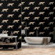 JUMBO SCALE 24 inch patroon herhalen. Moody ebony zwart grasdoek zoals textuur met een moderne stijl wandelende luipaard, natuurlijke botanische illustratie in neutrale kleuren. Modern tot klassiek Engels of Frans mannelijke elegantie voor slaapkamer, kantoor of bibliotheek. Verkrijgbaar in meerdere schalen voor grote en kleine ruimtes. Kunst door internationaal erkende kunstenaar en ontwerper, Audrey Jeanne Roberts ©. Audrey Jeanne's artwork is beschikbaar voor licenties via MHS Licensing.