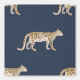 JUMBO SCALE 24 inch patroon herhalen. Rijke marineblauwe grasdoek zoals textuur met een , moderne loopluipaard, natuur botanische illustratie in neutrale natuurlijke kleuren. Klassieke Engelse of Franse mannelijke elegantie voor slaapkamer, kantoor of bibliotheek. Verkrijgbaar in meerdere schalen voor grote en kleine ruimtes. Kunst door internationaal erkende kunstenaar en ontwerper, Audrey Jeanne Roberts ©. Audrey Jeanne's artwork is beschikbaar voor licenties via MHS Licensing.