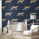 Leopard Botanische Natuur Waterverf Navy Blauw Behang