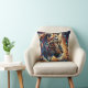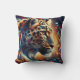 Dit prachtige Sierkussen toont een betoverende luipaard verweven met kleurrijke, wervelende patronen