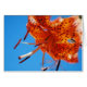 Oorspronkelijke foto van een luipaard tegen diepe blauwe hemel. Heldere oranje bladen met donkerbruine vlekken.