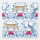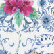 Speelse en kleurrijke Leopard en Peacock Chinoiserie stijl gestileerd bloemenpatroon in blauw en wit is klassiek en tijdloos met een twist! Kunst door internationaal erkende kunstenaar en ontwerper, Audrey Jeanne Roberts ©. Audrey Jeanne's artwork is beschikbaar voor licenties via MHS Licensing.