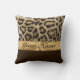 Leopard Print Kussens Decoratief met JOUW NAAM getypt op de gouden band zoals de band. De achterkant is een volledige bladzijdeafdruk en de voorkant heeft de Leopard Print, Golden Band met Jouw naam en bruin accent aan de onderkant. U kunt de Tekst ook helemaal SCHRAPPEN door "Jouw naam"te benadrukken en het te schrappen.