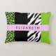 Leopard Print, Zebra Print, Green, Jouw naam Accent Kussen