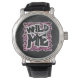Leopard Wild Me Black en Hot Pink Design Horloge