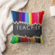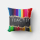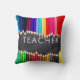 Unieke, heldere schoolkleraar-kussens zouden een schattig cadeautje zijn voor lerarenweek of terug naar schoolcadeau of cadeau voor artiest of grafisch ontwerper. Heeft een fotogrens boven en onder op rijen potloden in vette, heldere regenboogkleuren. Leest 'leraar' in het midden in moderne letters. Tegen een faux achtergrond. Hetzelfde op de rug. Fun cadeau voor kunstdocenten en kunstenaars. We hebben meer docenten cadeaus en design in onze Zazzle.com/angela65 shop.