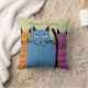 Leraar in ruste. Drie schattige folkkunstkatten elk met een andere expressie. Achterzijde van kussen in coördinerende kleuren met alleen de blauwe kat op een stapel boeken. *Alle afbeeldingen gemaakt door kunstenaar Gail Gabel*