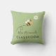 Kussen voor leraren klas met eenvoudige bij script en moderne typografie stoffig groen kussen.